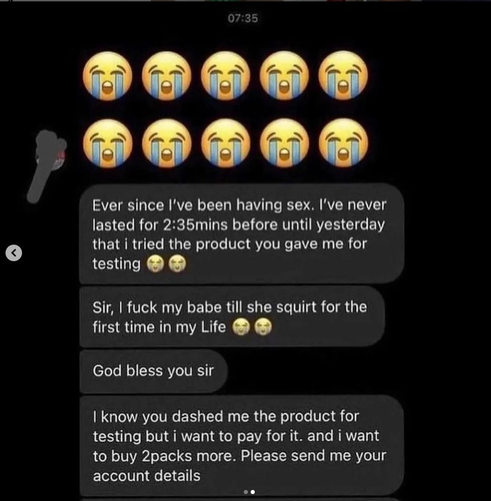 Mind you, all our products are made from natural substances. It has no side effect at all, no negative visible effect hasbeen recorded so far. Tested in the lab and highly trusted.