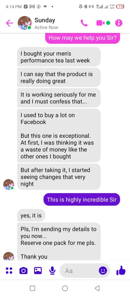 What defines a real man is not just the amount of money in his bank account, but also the ability to satisfy his partner well in bed. Lets be honest, A man not being able to meet this obligation can lead to problems in the relationship; like losing his respect, self confidence and worst off – losing madam to another man. This is why some Asian Scientists took upon themselves to find a solution – which led to the formulation of this herbal product called the TREASUREMAN TEA to help put a permanent end to this issue and help men get back their spark inside-out To be honest, this stuff works… No matter how long you have been battling with this or how severe it is or how many product you have tried in the past. Whether you find it hard to get that early morning erection, or always have loss of appetite when its time to do or your little man sleep off during or before the match begins, this product is the perfect solution.